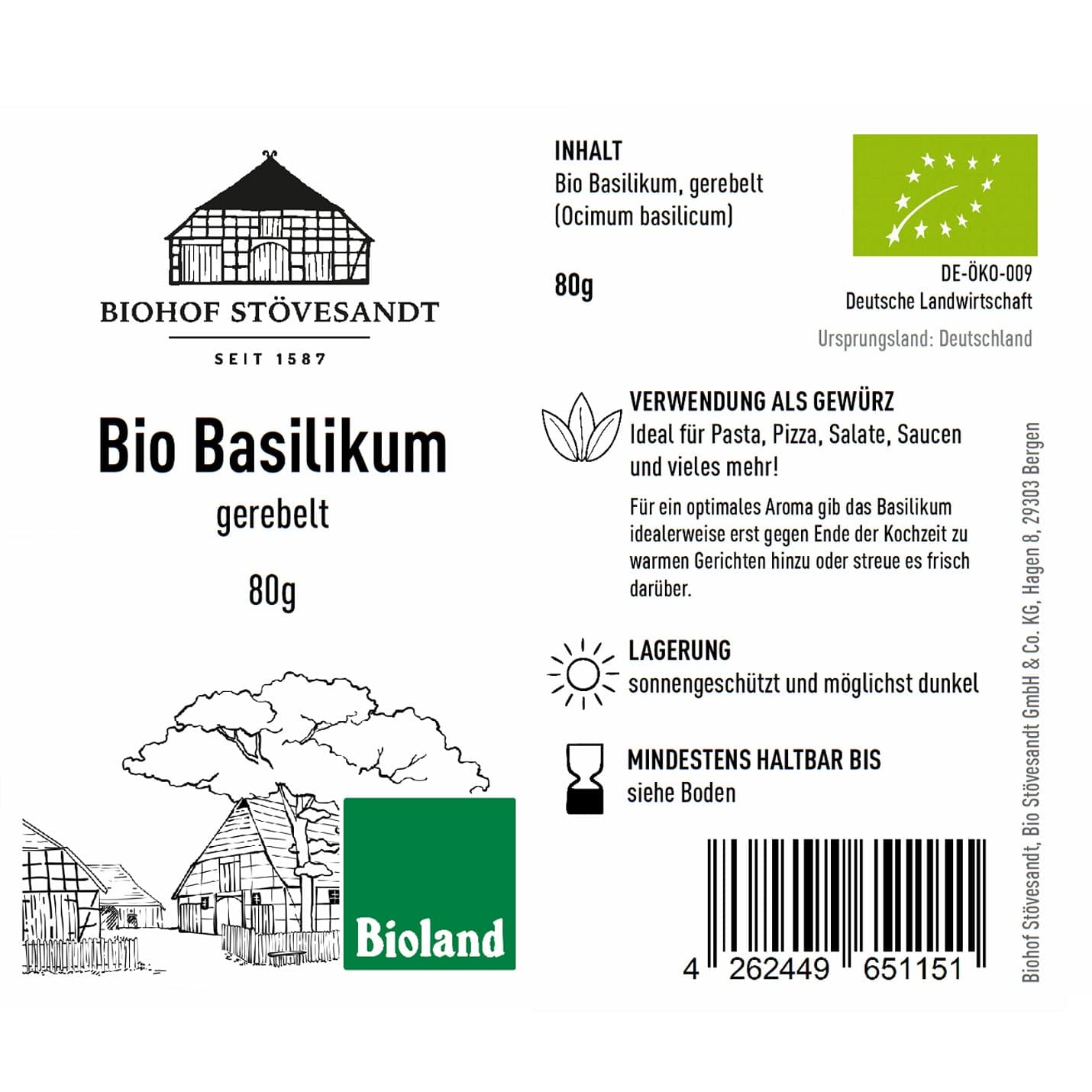 Welche Dosierung wird empfohlen?Die Dosierung von getrockneten Basilikum kann je nach persönlichem Geschmack und Rezept variieren. Als grobe Richtlinie kannst du etwa 1 Teelöffel Basilikum für eine Sauce oder Suppe verwenden. Wie sollte ich das Produkt lagern?Wir empfehlen, das gerebelte Basilikum sonnengeschützt, am besten dunkel und fern von Feuchtigkeit zu lagern. Eine geschlossene Dose eignet sich optimal zum möglichst langfristigen Erhalt des Aromas. Wie ist die Haltbarkeit?Das Mindesthaltbarkeitsdatum (MHD) beträgt 18 Monate. Es ist auf der Unterseite der Packung zu finden. |