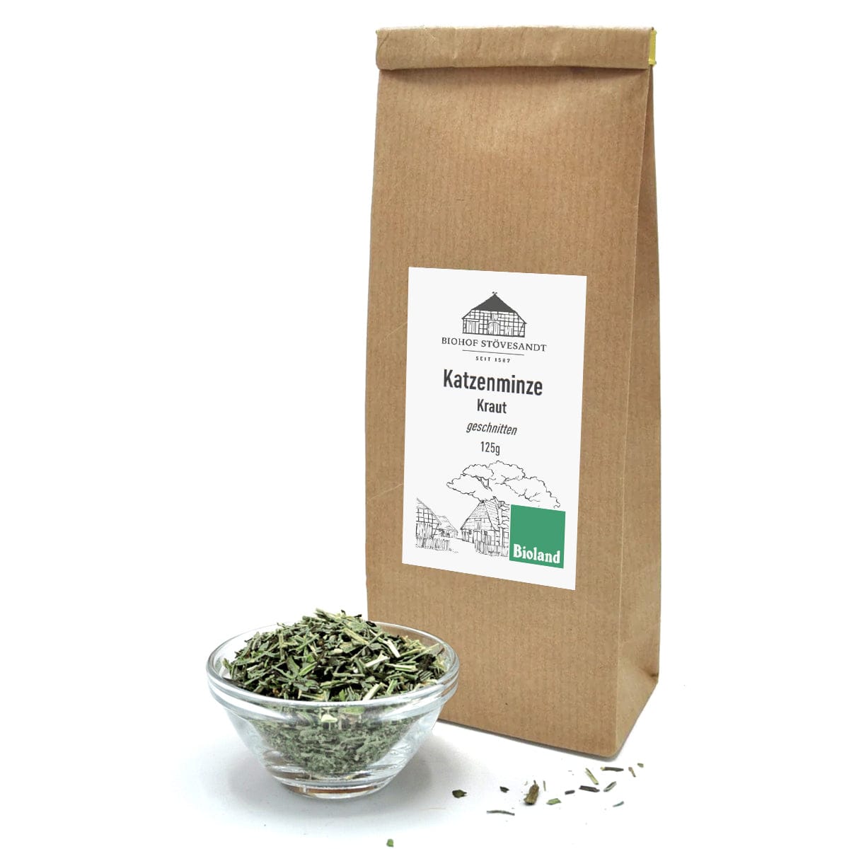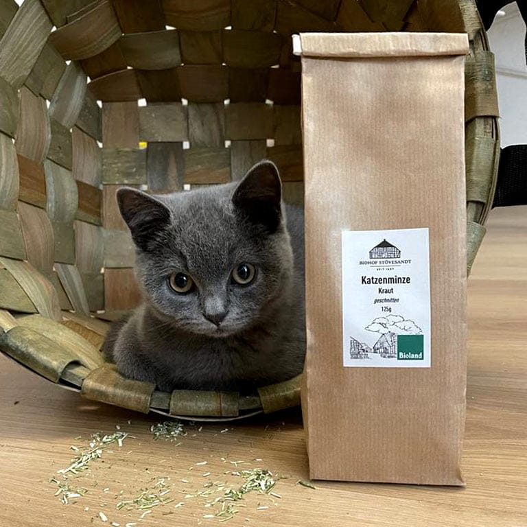 Wie sollte ich das Produkt lagern?Wir empfehlen, die geschnittenen Katzenminze sonnengeschützt, am besten dunkel und fern von Feuchtigkeit. Eine Teedose eignet sich optimal zum möglichst langfristigen Erhalt des Aromas. Wie ist die Haltbarkeit?Das Mindesthaltbarkeitsdatum (MHD) beträgt 18 Monate. Es ist auf der Unterseite der Packung zu finden. |