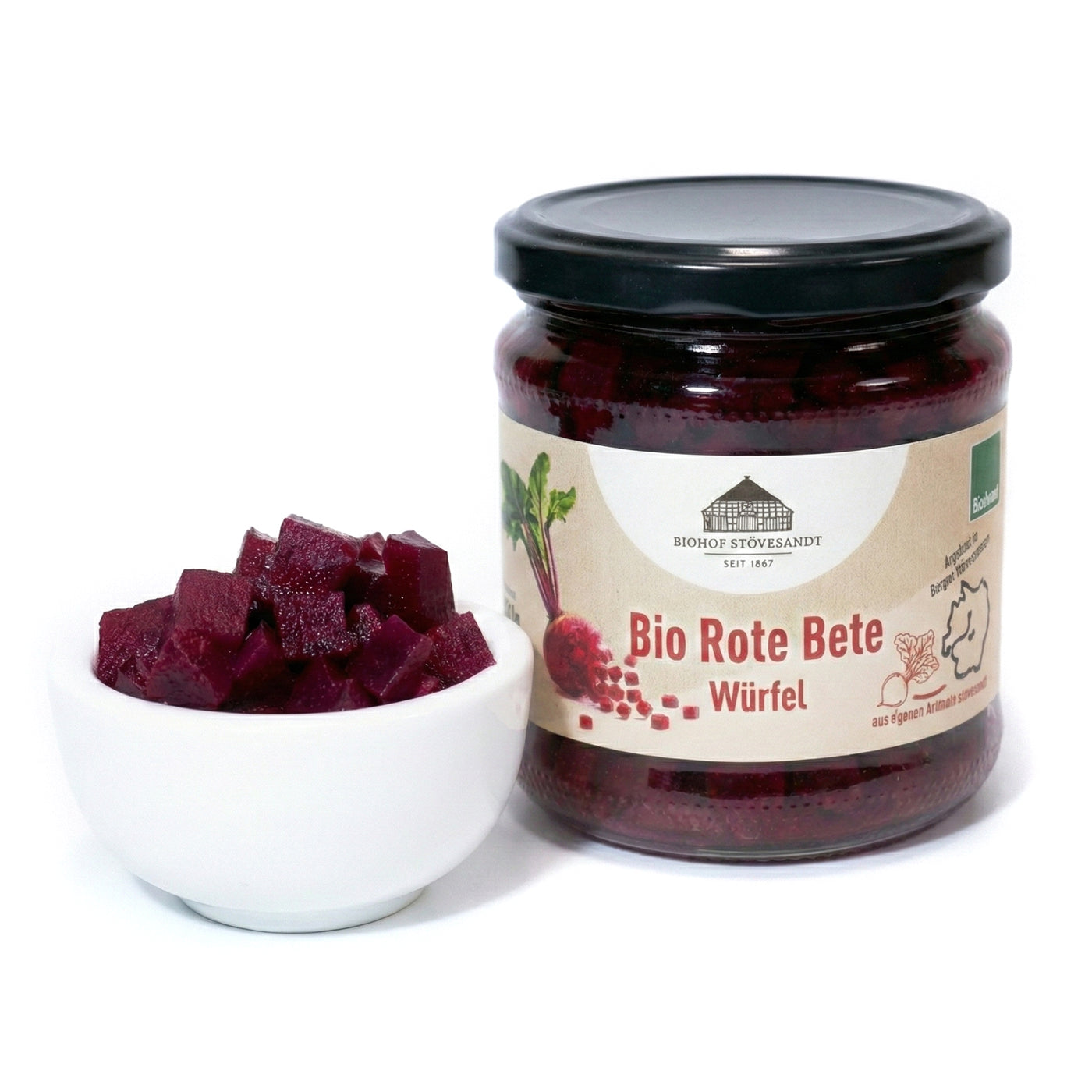 Rote Bete Würfel – Fix und fertig, fein gewürzt.Wir lieben frische Rote Bete – aber manchmal fehlt im Alltag einfach die Zeit für die Zubereitung. Genau dafür gibt es unsere Bio Rote Bete Würfel. Damit hast du die gewohnte Qualität immer griffbereit im Vorratsschrank. Die Rüben wachsen direkt in Bergen auf unseren Feldern, werden erntefrisch verarbeitet und kommen fertig gewürfelt ins Glas. Im Gegensatz zur frischen Knolle, die du nach Belieben selbst würzen kannst, haben wir hier die Arbeit schon erledigt. Die Würfel sind in einem feinen Sud aus Branntweinessig, etwas Rübenzucker und Meersalz eingelegt. Für das gewisse Etwas sorgen klassische Gewürze: Kümmel und Nelke. Das schmeckt herrlich mild, süß-säuerlich und schön traditionell. Warum das Glas in deinen Vorrat gehört: