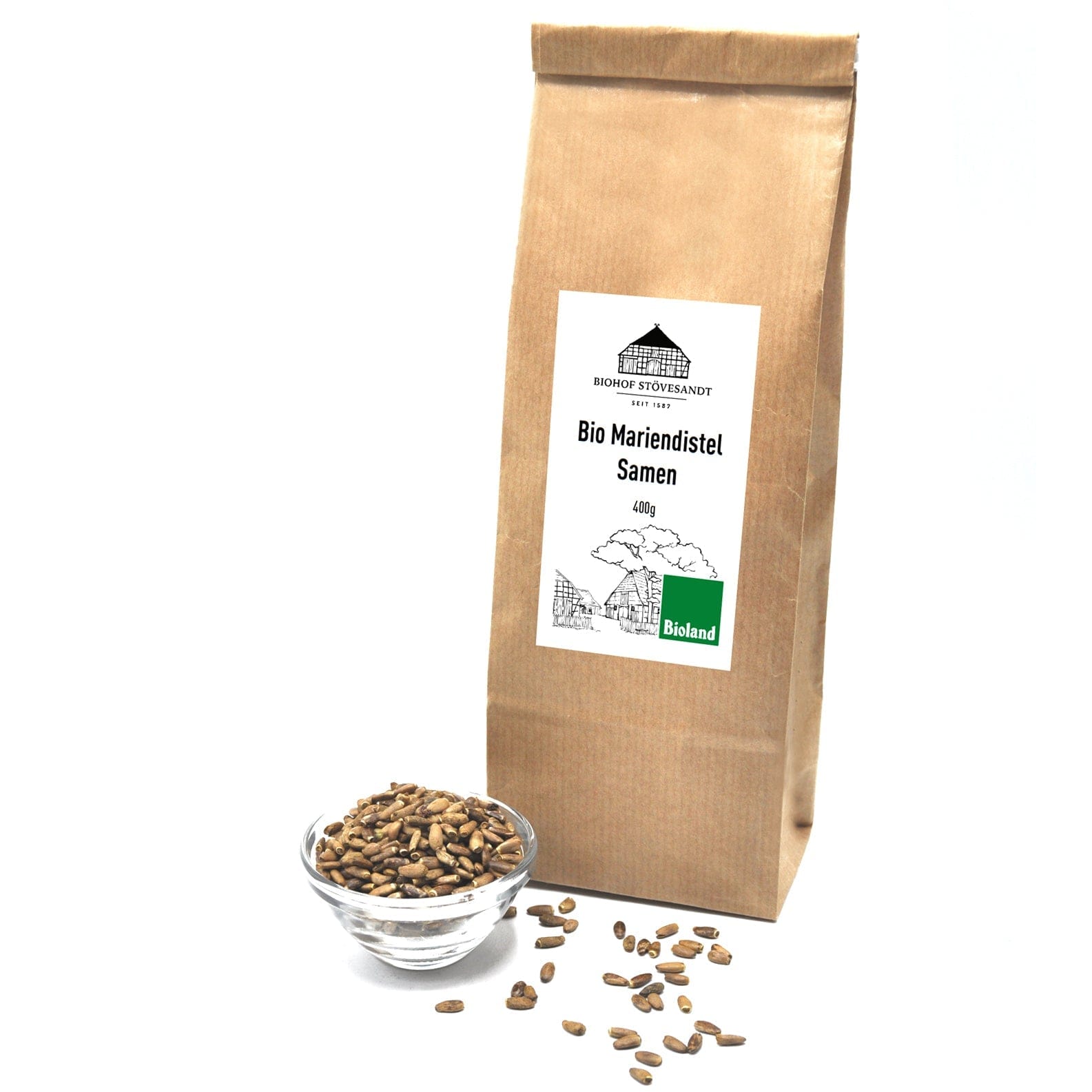 Welche Dosierung wird empfohlen?400mg Silymarin gelten als maximal wirksame Tagesdosis.[5] Um diese Menge vollständig auszuschöpfen empfehlen wir die Einnahme von 1 gehäufelten Esslöffel unserer Samen täglich. Wann sollte ich die Samen einnehmen?Bei dem Zeitpunkt der Einnahme des Wirkstoffes muss dessen von Natur aus geringe Bioverfügbarkeit berücksichtigt werden. Dies bedeutet, dass dieser nur langsam vom menschlichen Körper absorbiert werden kann.[6] Es empfiehlt sich daher die Einnahme des Pulvers am Abend. Durch eine lange Verweildauer des Wirkstoffes im Magen kann er bestmöglich von deinem Körper aufgenommen werden. Wie kann ich die Samen einnehmen?Grundsätzlich empfiehlt sich die Einnahme zusammen mit einer Mahlzeit. Die Samen sollten entweder mit einem Mixer oder Mörser zerkleinert, oder aber gut gekaut werden, damit der Körper das Enthaltene Silymarin gut aufnehmen kann. Die Samen können beispielsweise hervorragend zusammen mit einem Johurt oder Müsli eingenommen werden. Wie sollte ich das Produkt lagern?Wir empfehlen, die Kapseln sonnengeschützt, am besten dunkel und bei Raumtemperatur in unserem wieder verschließbaren Papierbodenbeutel aufzubewahren. Wie lange sind die Samen haltbar?Das Mindesthaltbarkeitsdatum (MHD) beträgt 18 Monate. Es ist auf der Unterseite der Packung zu finden. Was ist der Unterschied zwischen Samen und Früchten?Die Samen der Mariendistel werden in der Literatur vereinzelt auch als Früchte bezeichnet. Die Bezeichnungen "Samen" und "Früchte" bezeichnen also dasselbe. Sind (zerkleinerte) Samen so wirksam wie ein Extrakt?Entscheidend ist in diesem Zusammenhang die eingenommene Tagesdosis an Silymarin. Diese kannst du sowohl über Samen als auch über einen Mariendistelextrakt zu dir nehmen. |