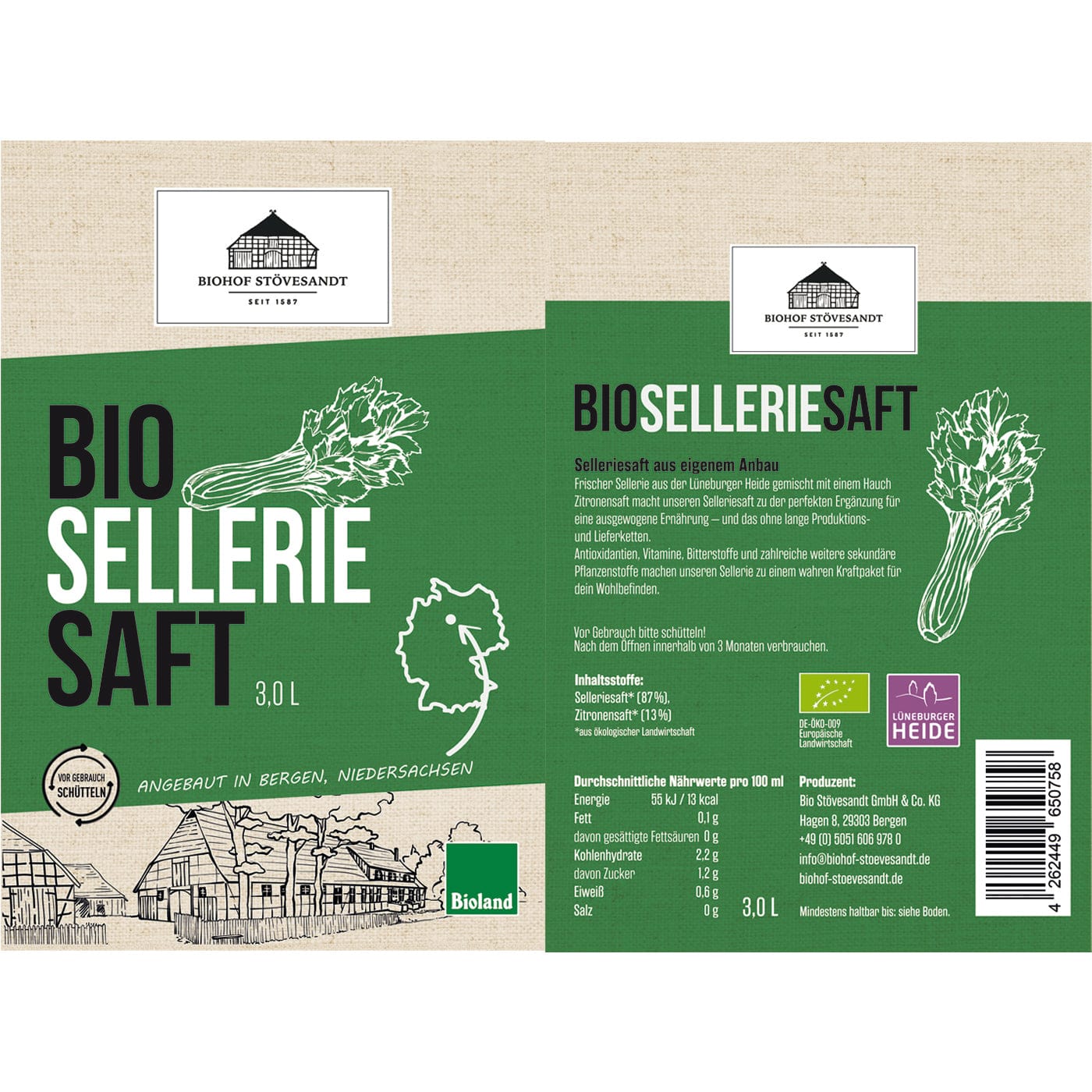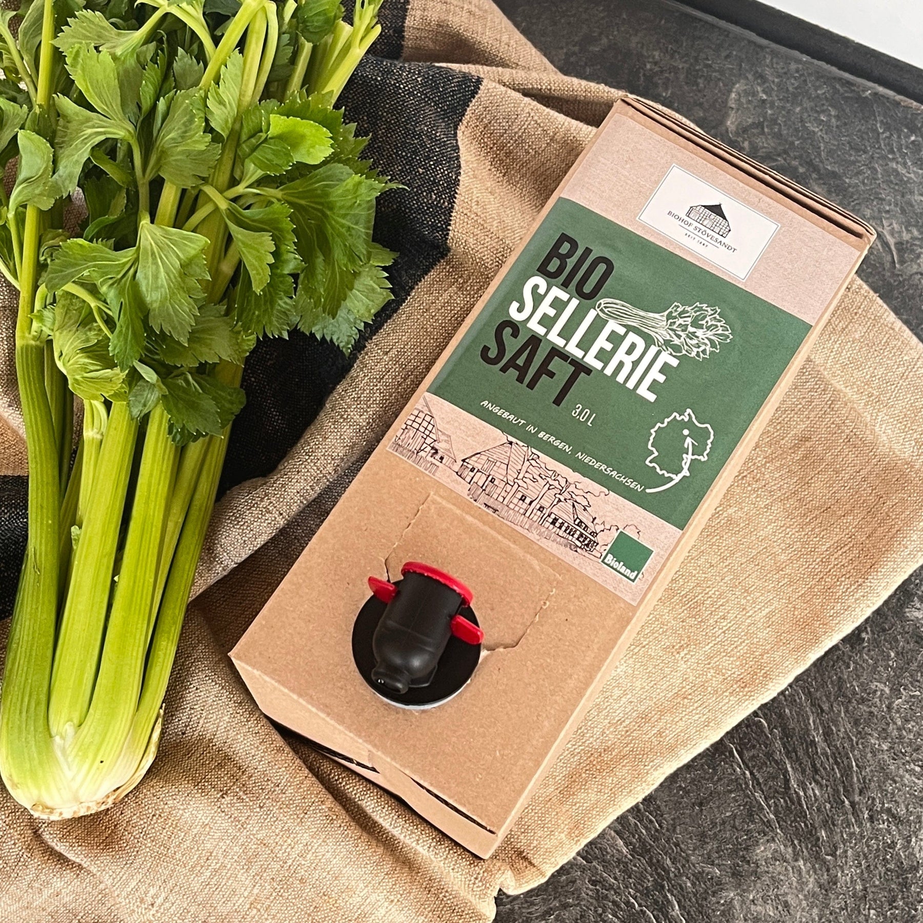 Selleriesaft vom Biohof Stövesandt - natürlich aus eigenem AnbauUnser frisch gepresster Selleriesaft ist der ideale Begleiter für alle, die auf der Suche nach einer natürlichen Ergänzung ihrer bewussten Ernährung sind. Wir haben den Saft aus den erntefrischen Selleriestangen unseres eigenen Bio-Anbaus in der Lüneburger Heide hergestellt. Er enthält keinerlei Zusätze. Lediglich ein Schuss Zitronensaft sorgt für die besondere Frische und verleiht dem Saft eine entsprechende Haltbarkeit. Selleriesaft Kur - mit unserer praktischen 3L-BoxUnsern Selleriesaft bekommst du als 3L-Box zu dir nach Hause. Das praktische Bag-in-Box-System ermöglicht es dir, den Saft auch nach Anbruch noch für 3 Monate ungekühlt aufzubewahren. Allzulange steht der Saft jedoch in den seltensten Fällen in deiner Küche. Zumeist wird der Saft nämlich in Form einer Selleriesaft Kur verwendet. Diese ist besonders beliebt bei den Anhängern der Philosophie von Anthony William, der die regelmäßige Einnahme von Selleriesaft empfiehlt. Die empfohlene Verzehrmenge liegt nach dessen Philosophie bei mindestens 500ml pro Tag. Selbst bei einer geringeren Dosierung sind 3 Liter unseres Selleriesaftes nach kurzer Zeit aufgebraucht. Selleriesaft werden zudem zahlreiche gesundheitliche Vorteile nachgesagt, wie zum Beispiel die Unterstützung der Entgiftung und der Verdauung. Ebenfalls heißt es, dass er das Immunsystem stärken und das Wohlbefinden verbessern kann. Selleriesaft kaufen - bequem und sicher in unserem OnlineshopWenn Du auf der Suche nach einem Selleriesaft bist und dir nicht nur Bio-Qualität sondern auch eine Gewissheit über die Herkunft des Selleries wichtig ist, bist du bei uns genau richtig. Wir garantieren dir, dass sämtliche Stauden von uns selbst auf unseren Felden in der Lüneburger Heide nach den Standards von Bioland angebaut wurden und freuen uns, dir unseren Selleriesaft an dieser Stelle anbieten zu können. Bestelle jetzt bequem und sicher in unserem Onlineshop und entdecke unseren Selleriesafts selbst.
